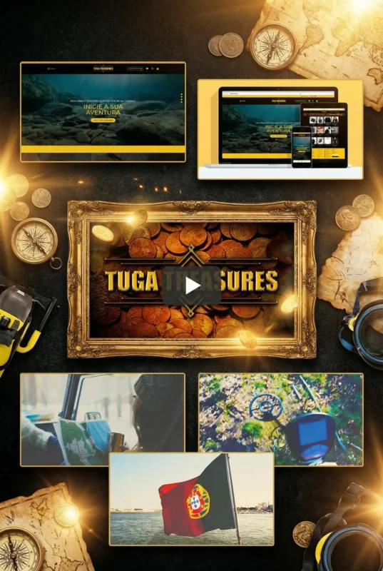 Designing for discovery: A multimedia showcase for Tuga Treasures. From the golden-hued logo design to high-energy video editing, this case study illustrates how to brand a gamified tourism experience. Featuring integrated web design mockups and immersive visual storytelling.